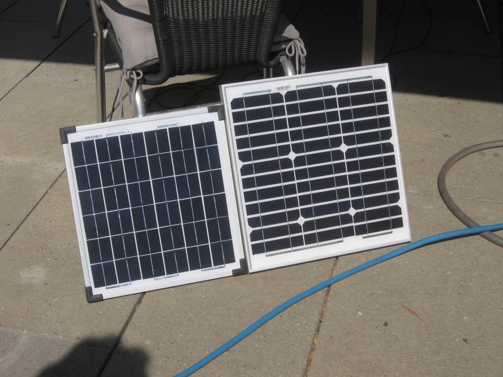 -- 27Sep2014: Switched to solar power source (two 20W panels with 2x 9Ah Gel lead-acid batteries)