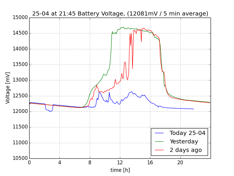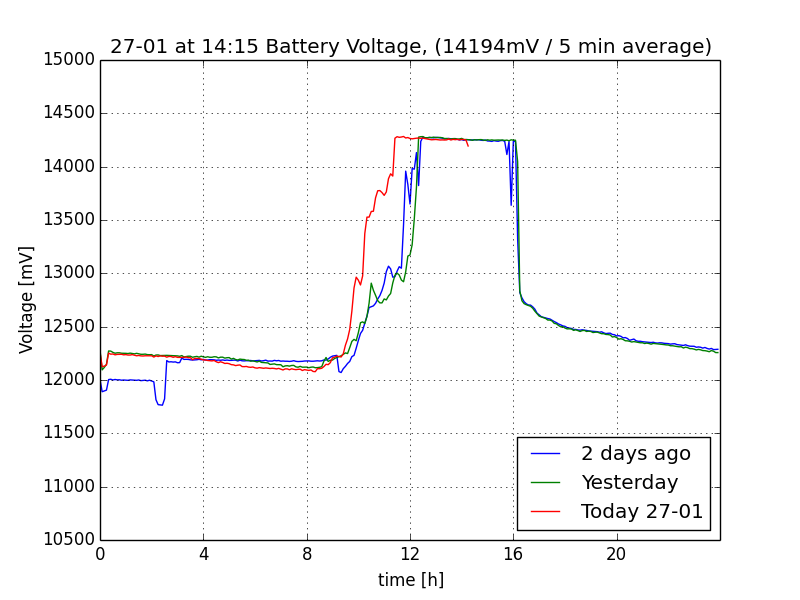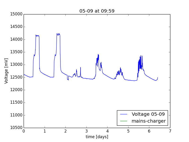 ![]() Voltage plot last 72 hours (one averaged sample every 5 mins) |